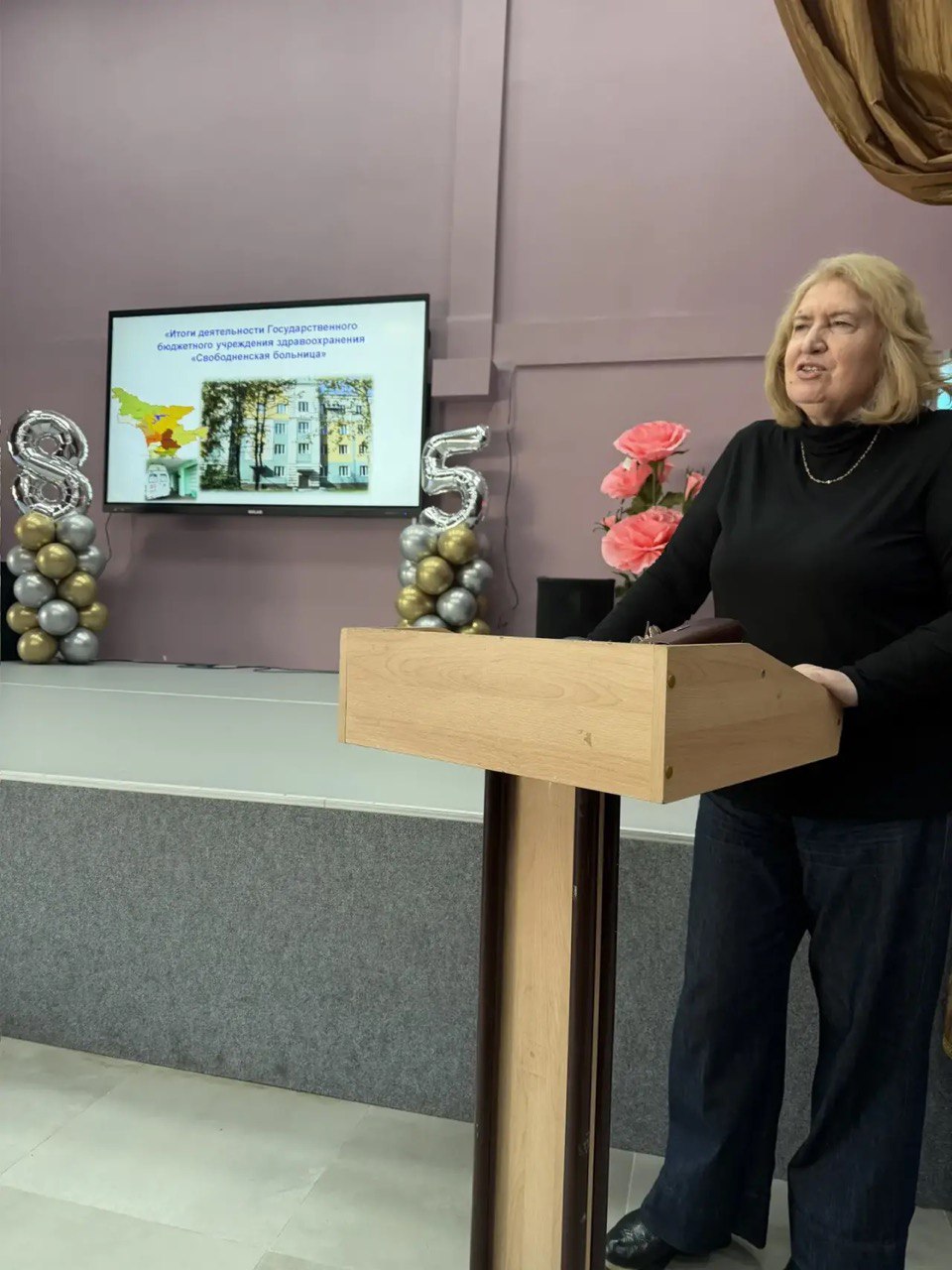 The chief physician of the Svobodny Hospital Nina Vasilyevna Lesik spoke to the schoolchildren. Given the serious role of the city of Svobodny in the socio-economic development of the Far Eastern Federal District, the head of the Svobodny Hospital outlined the prospects for the development of the city's health care and the need for medical personnel.