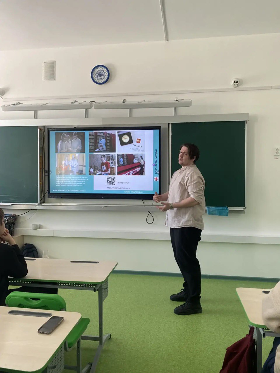 At school No1 in the city of Svobodny, the children were told about the conditions for admission to the Amur State Medical Academy in 2026, the formation of targeted admission, the possibility of continuing postgraduate training within the walls of the academy, stimulating support for young doctors.