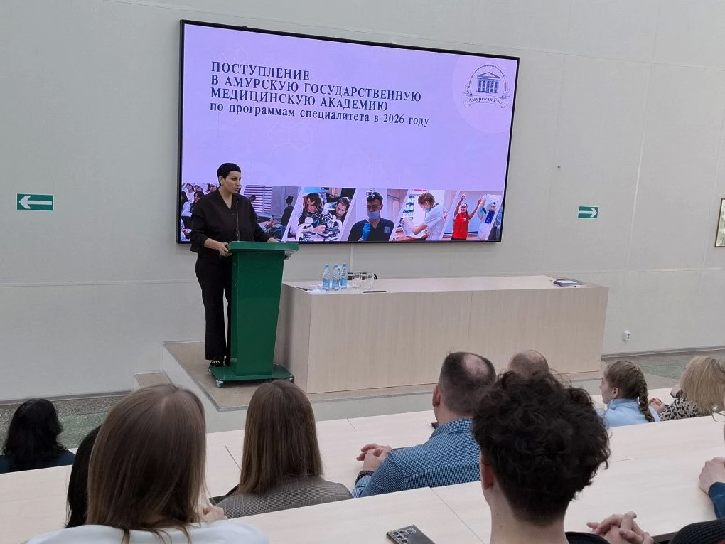Vice-Rector for Youth Policy and Educational Activities Irina Anatolyevna Berdyaeva told the schoolchildren about the rules of admission and the features of admission to the Amur State Medical Academy.
