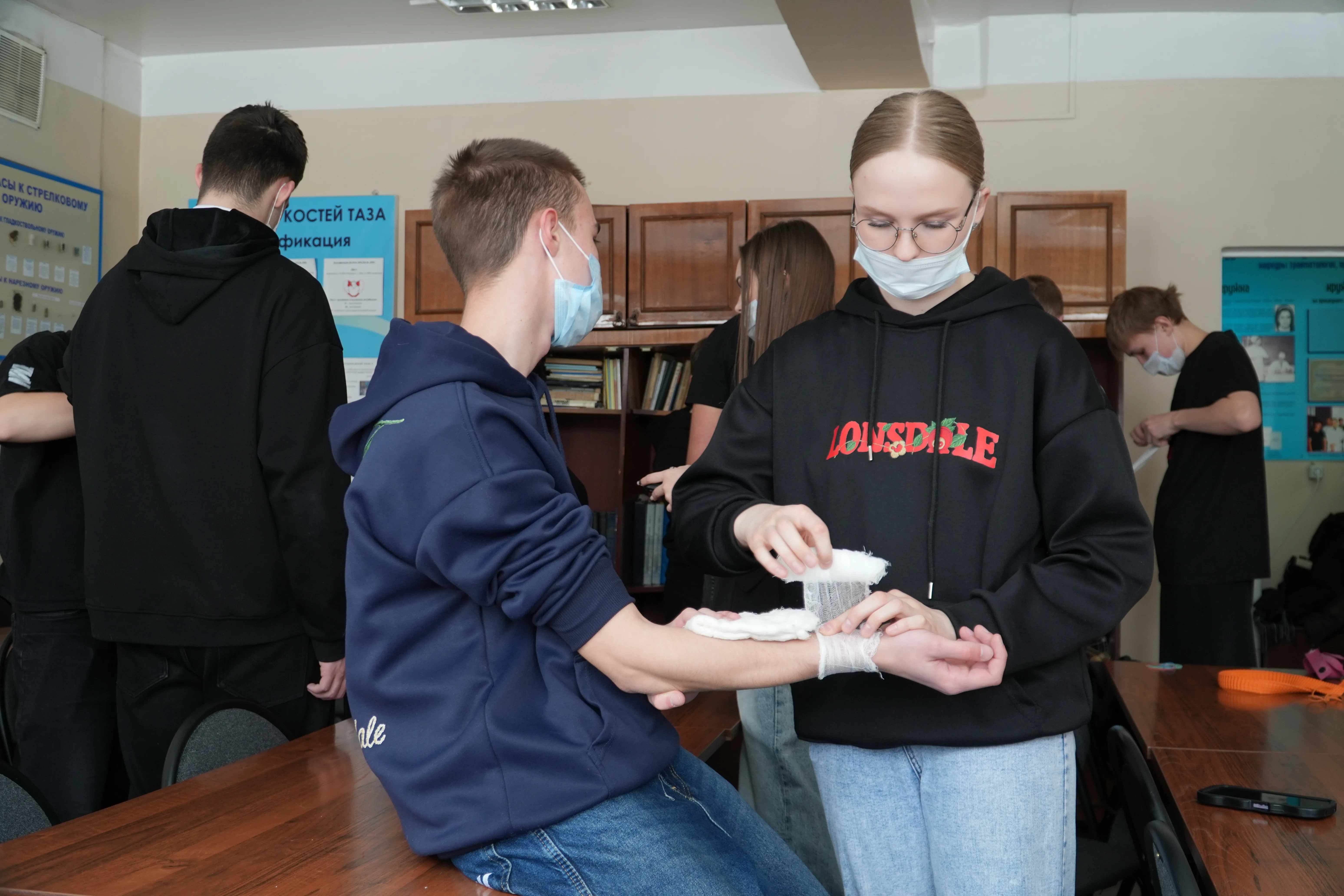 The children practiced applying bandages, tried to install tourniquets to stop bleeding, and also learned that the human body can work as a lie detector and even listened to the poems of Sasha Cherny.