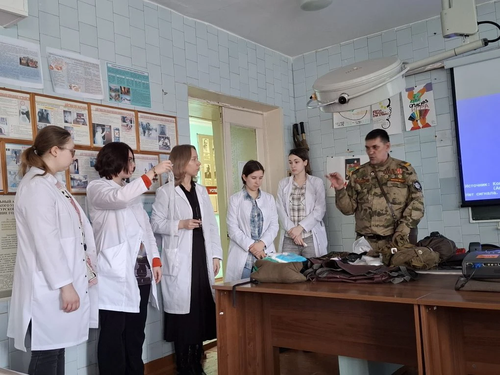 At the Department of Traumatology, with a course in disaster medicine, Amur State Medical Academy organized an interactive session between students and a special military operation participant, Anatoly Shanin. The session focused on real-world medical applications, emergency response, and safety protocols in high-risk environments.