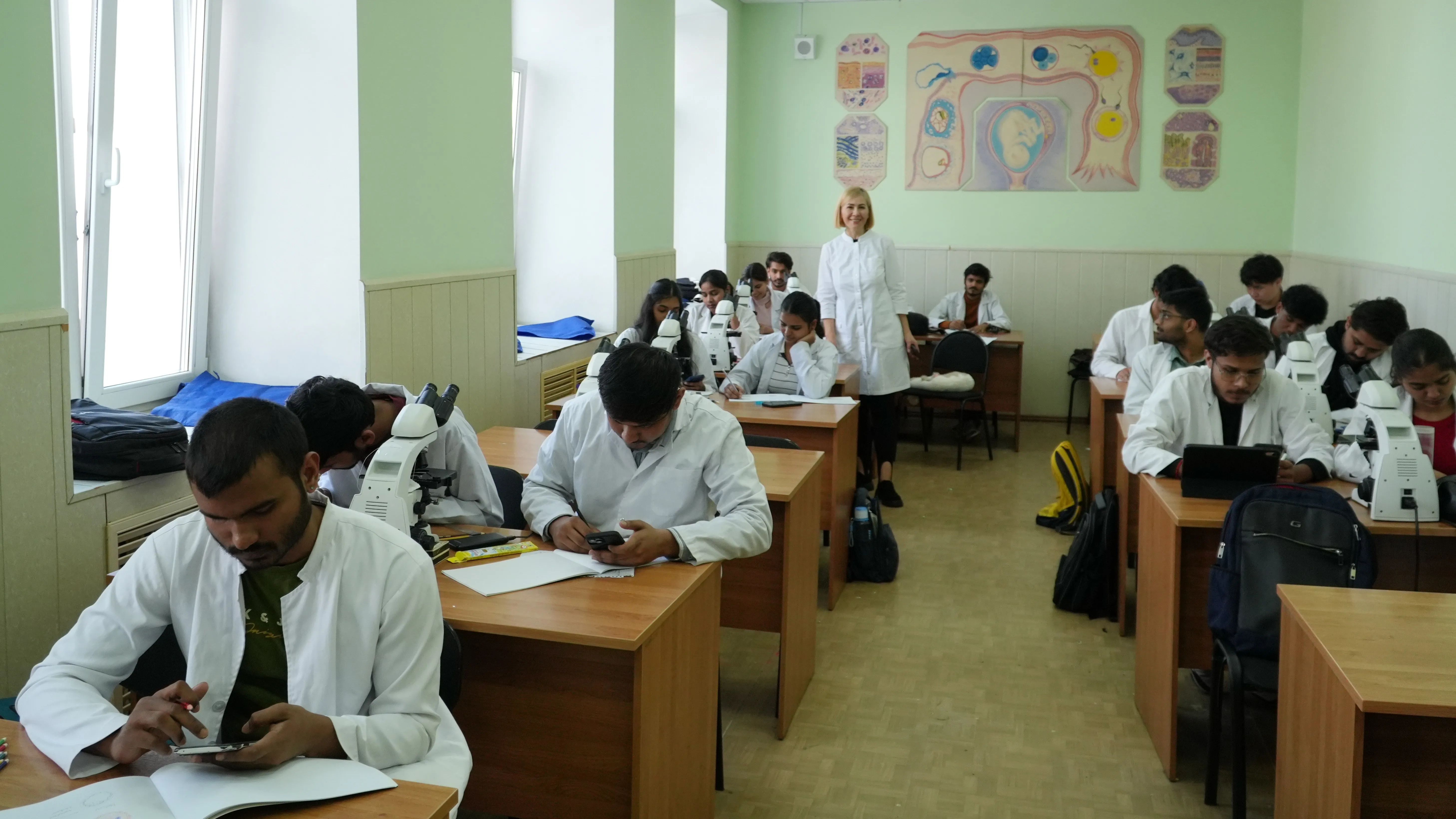 "The guys began to study the course of histology, embryology, cytology. We have two semesters to study this discipline, at the end of which students will take an exam. It is quite difficult for international students to study the discipline, as there are a lot of new terminology for them. Given the language barrier, classes require a lot of preparation - both on the part of the guys and on my part, as a teacher. The first two classes we studied the cell, now we study the embryonic development of a person, a little later we will study tissues and organs. Histology can be called microanatomy, here students study how the human body is arranged at the microscopic level," said Irina Yurievna Sayapina, head of the Department of Histology and Biology.