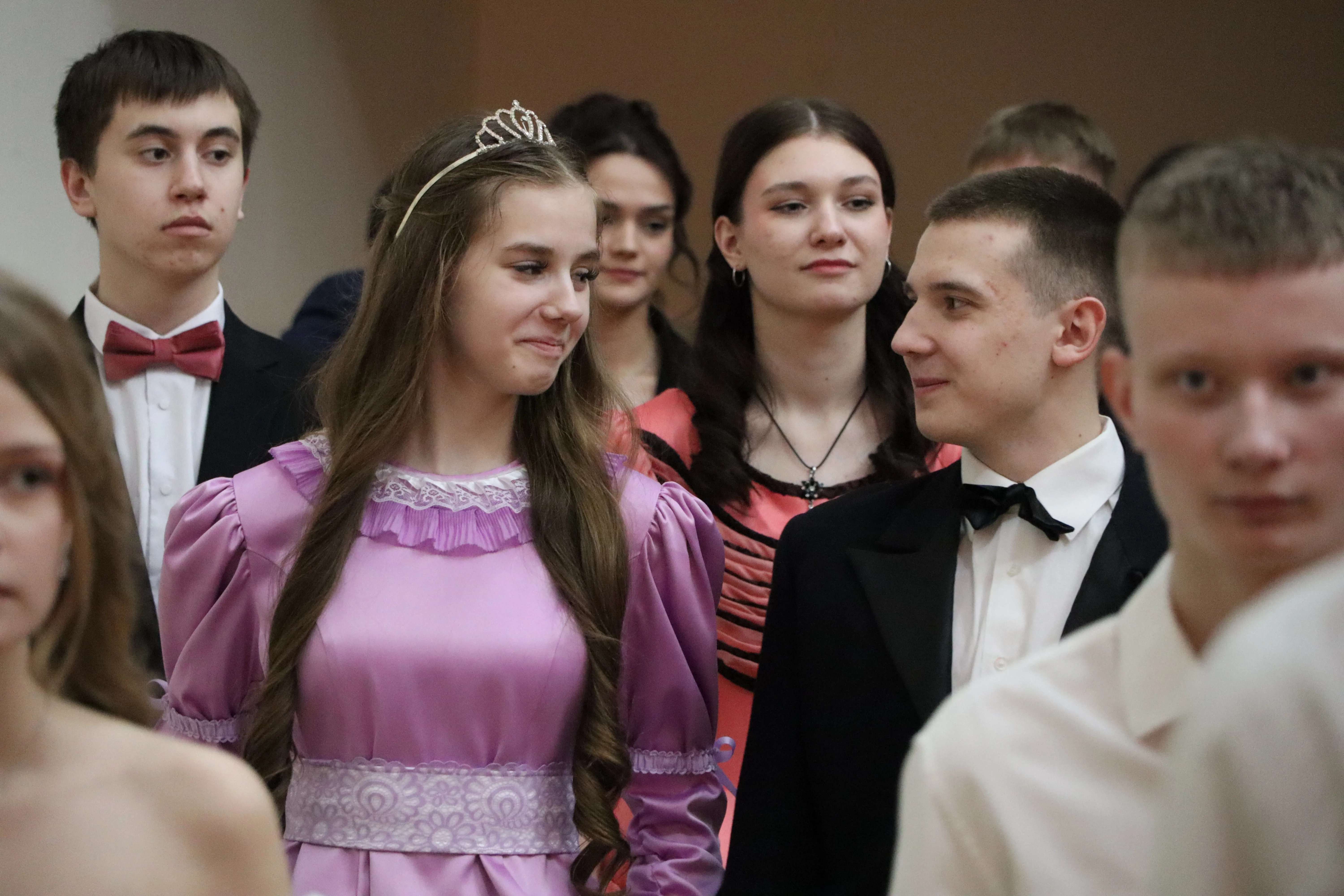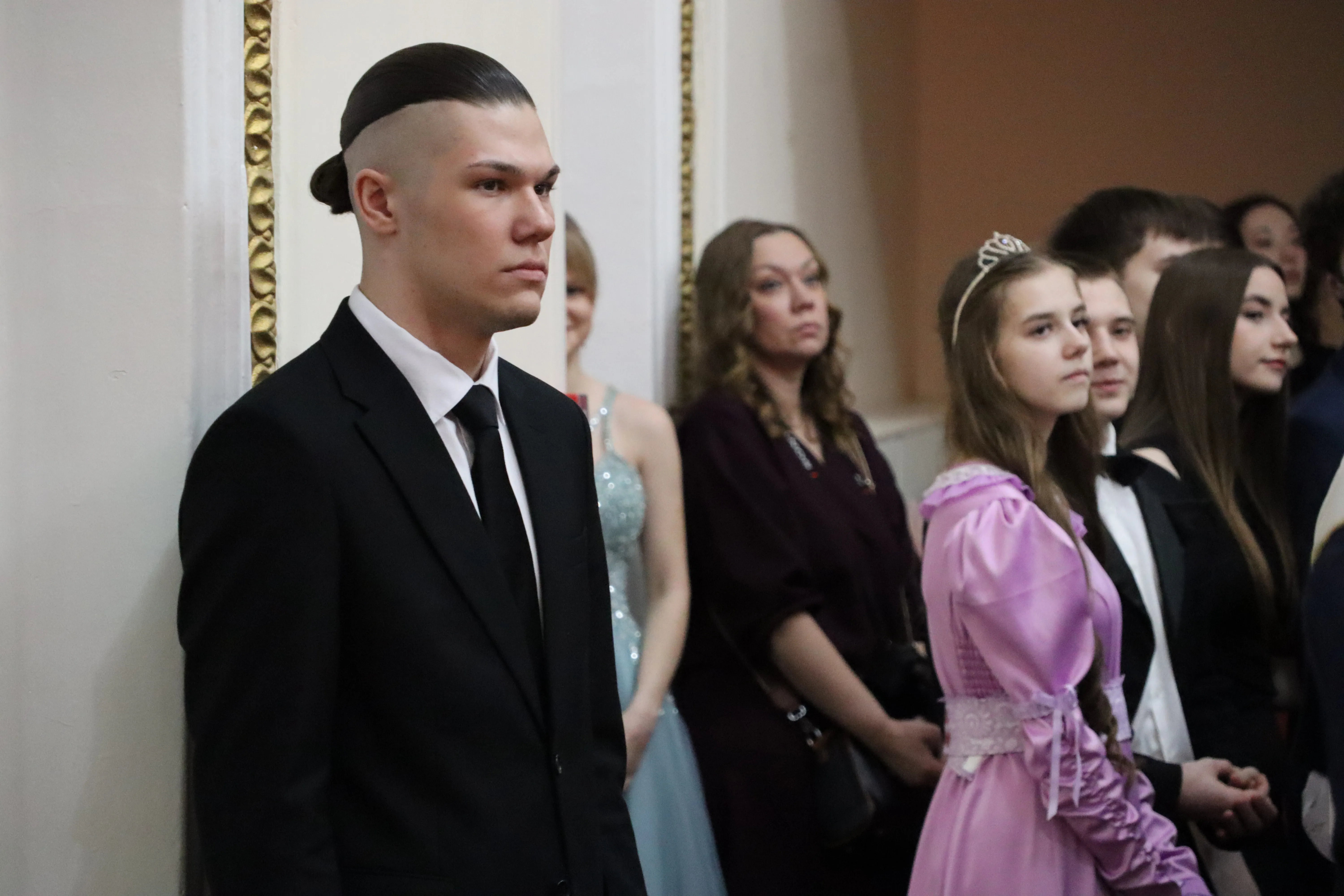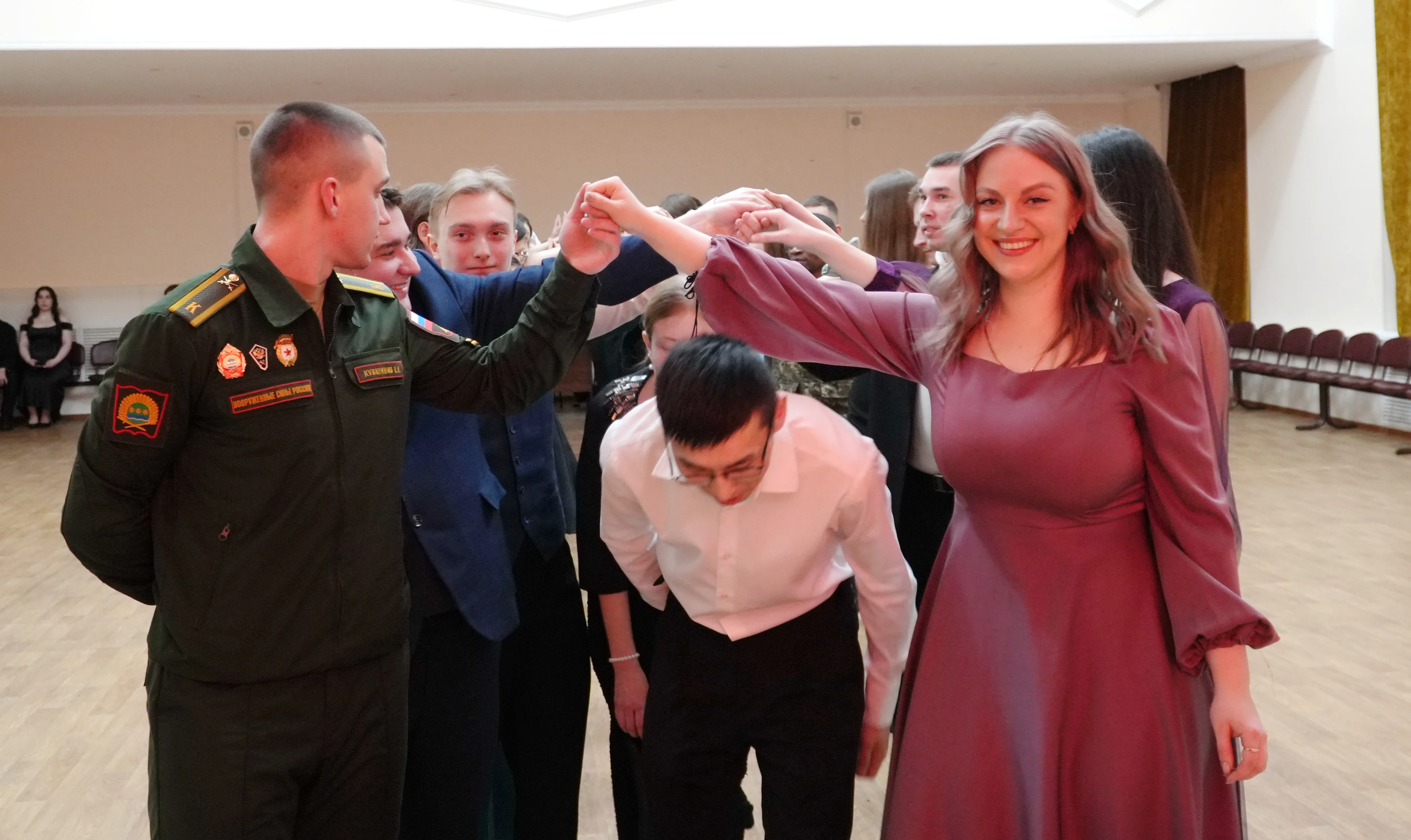 Representatives from more than ten educational institutions of the Amur Region capital attended the celebration. Before the official program began, students dressed in tuxedos, suits, and classical ball gowns took photographs in a themed photo zone and participated in interactive activities, including a fortune-telling session inspired by historical traditions.