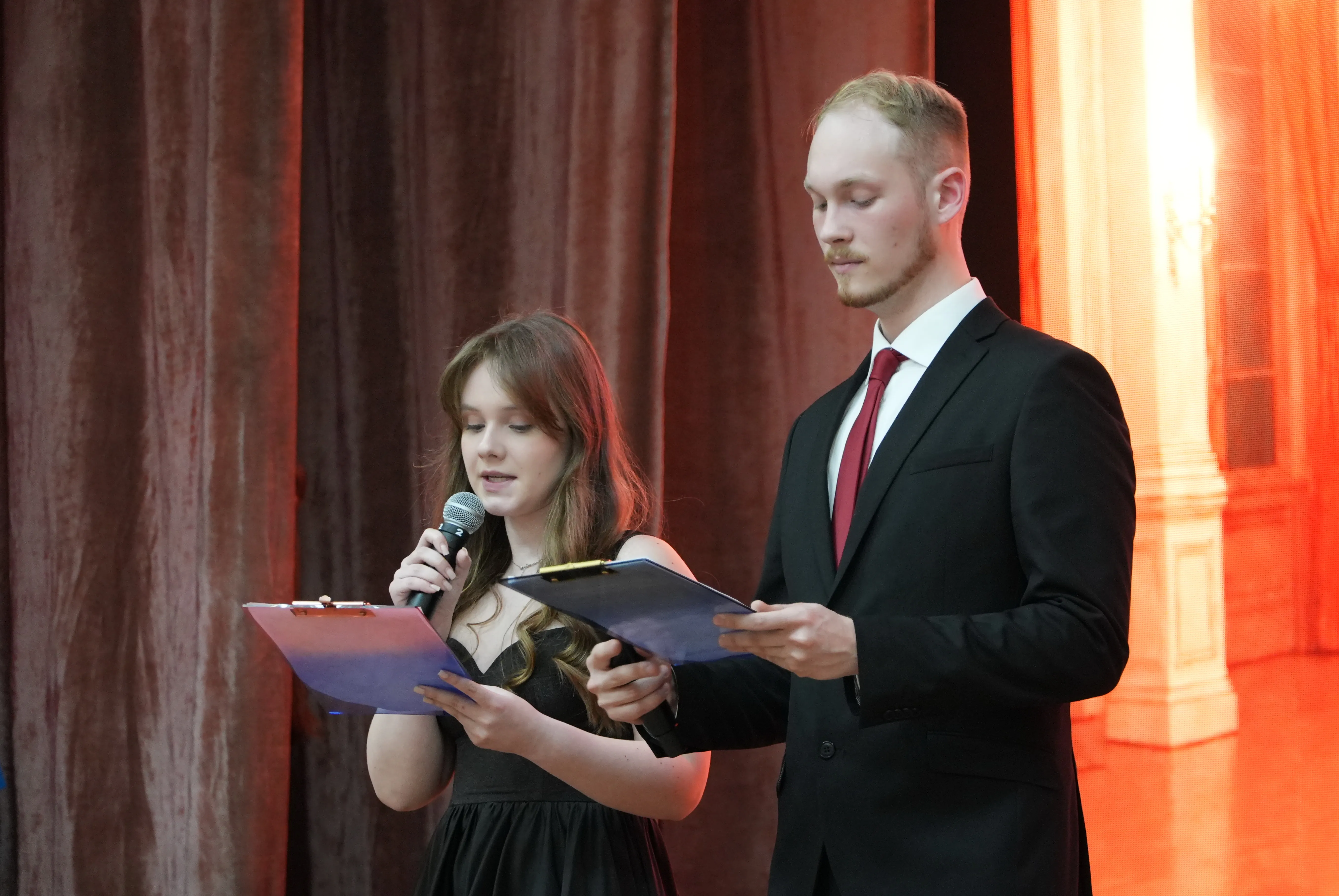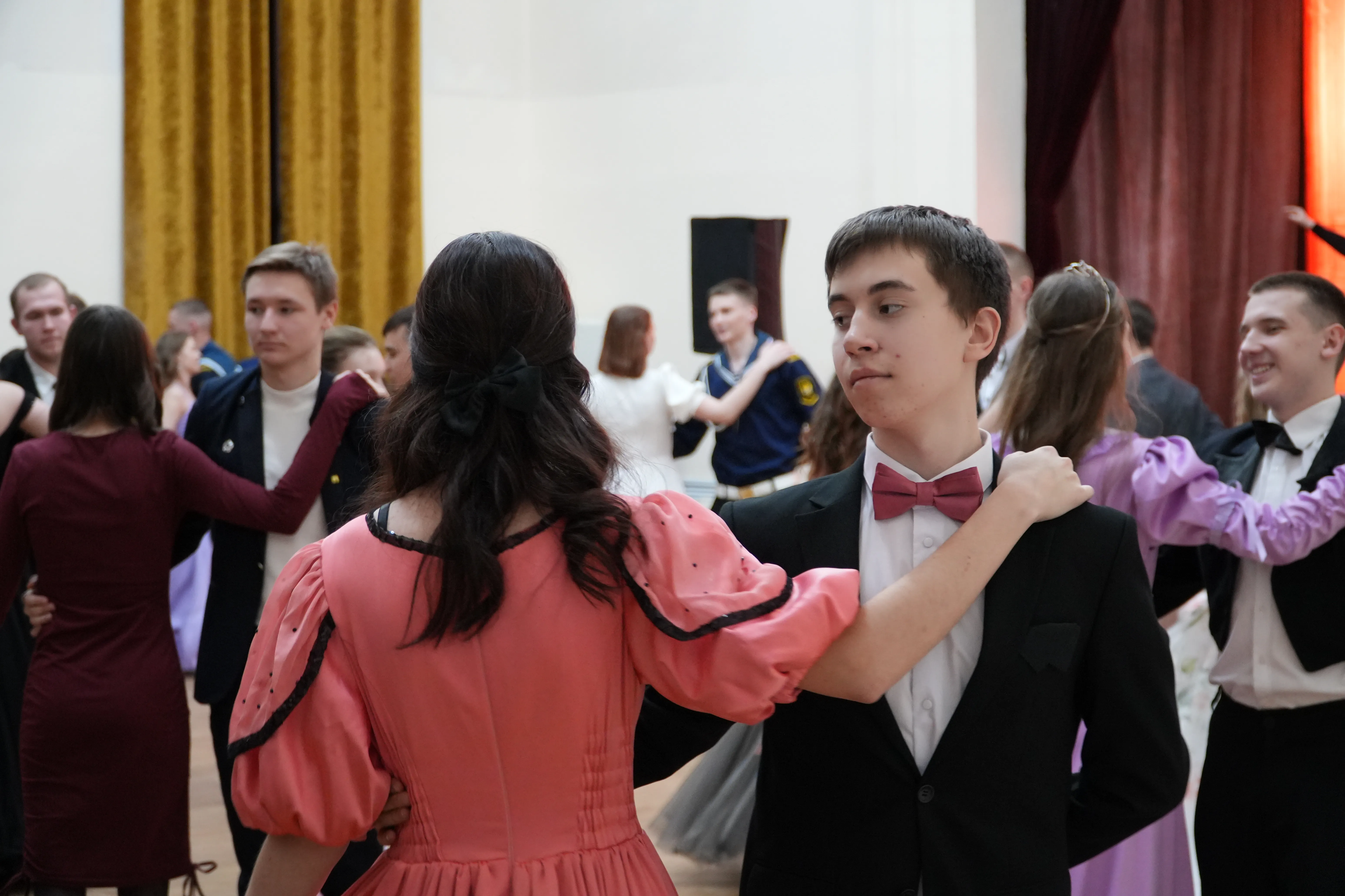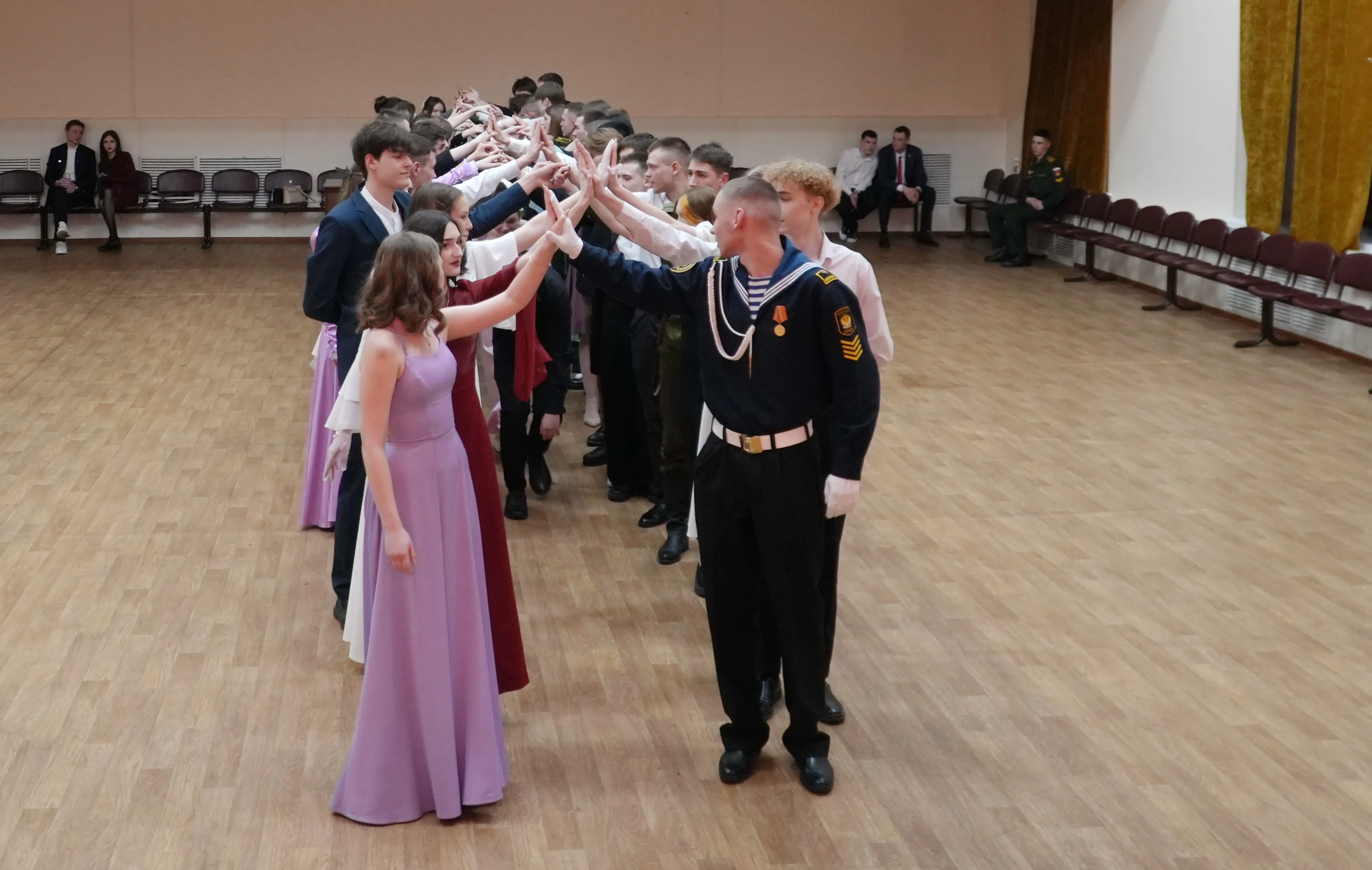 Representatives from more than ten educational institutions of the Amur Region capital attended the celebration. Before the official program began, students dressed in tuxedos, suits, and classical ball gowns took photographs in a themed photo zone and participated in interactive activities, including a fortune-telling session inspired by historical traditions.