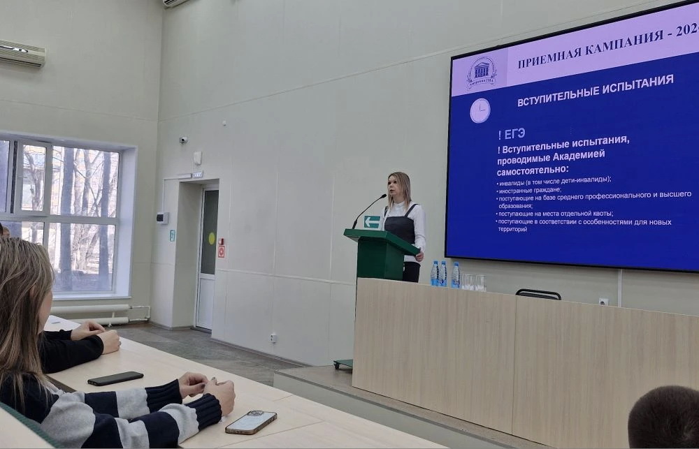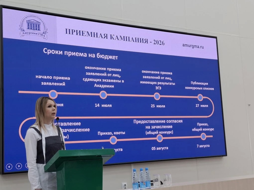Vice-Rector for Youth Policy and Educational Activities Irina Anatolyevna Berdyaeva told the schoolchildren about the rules of admission and the features of admission to the Amur State Medical Academy.